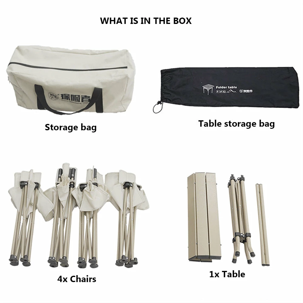 - What’s in the box: 1x Storage bag, 1x Table Storage bad, 4x Chairs & 1x Table