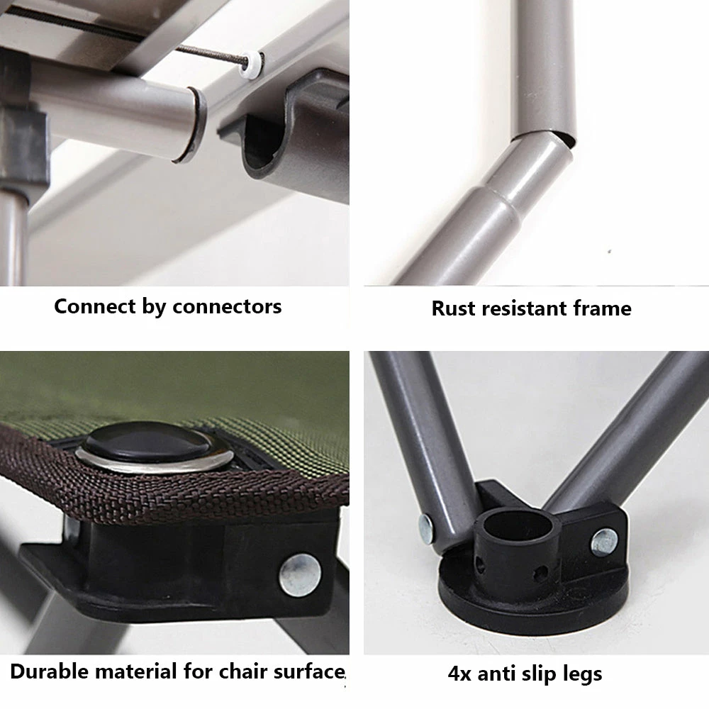The folding chair & table set is made of alloy aluminum and 600 oxford cloth for chair surface which is waterproof, rustproof, lightweight and heavy duty. It can be folded into compact size for convenient carry around in camping, traveling and other outdoor activities. The chair can be sets up quickly and easily. The table also very durable that will not easily bend if stack with heavy item. It is perfect for traveling, camping, a day at the beach, an outdoor concert, fishing, hunting, golfing, etc.