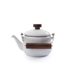 A beautiful statement piece for your camp kit or home kitchen. Ideal for quickly heating water for camp coffee, tea, hot chocolate, and more. The Teapot features a hand-finished, baked stainless steel trim that creates a copper-like patina finish and matches our full enamelware line.