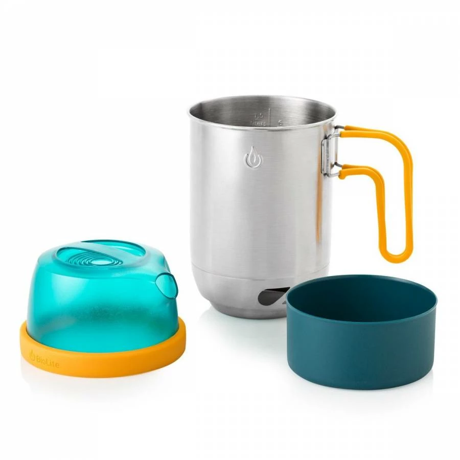 Cookware designed to meet the needs of an outdoor meal. A true grab-and-go system, the KettlePot pours like a kettle and cooks like a pot while doubling as a carrying case for the BioLite CampStove.