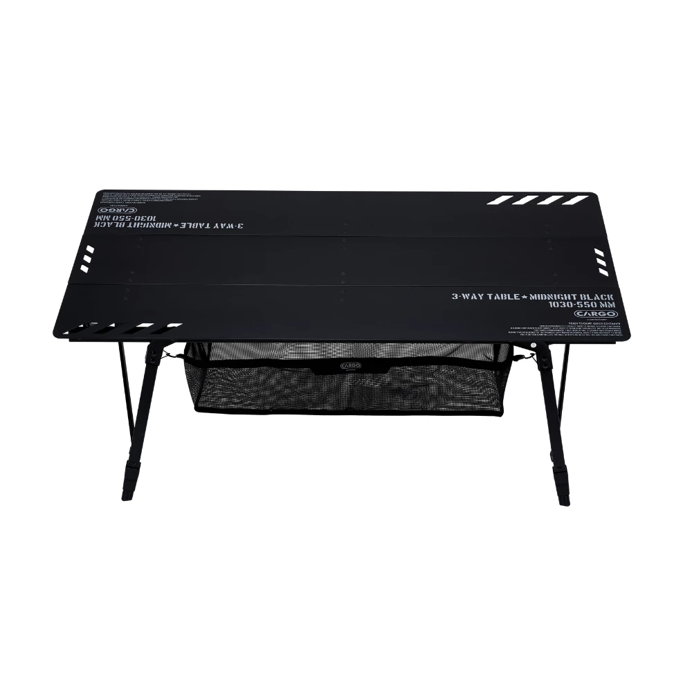 The patented 3-WAY TABLE is a folding table exclusively developed by CARGO CONTAINER. 3-WAY TABLE is the world’s first 3-part separating/combining table. This main table enables convenience and safety at the same time. Since the specifically developed connection coupling combines the countertop and the leg frames sturdily, the table is not separated out while moving or using it, which allows you to use it stably.