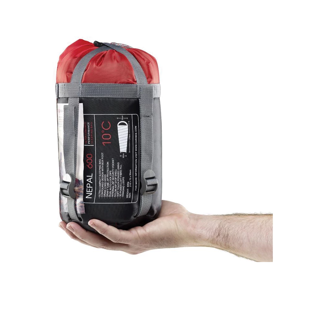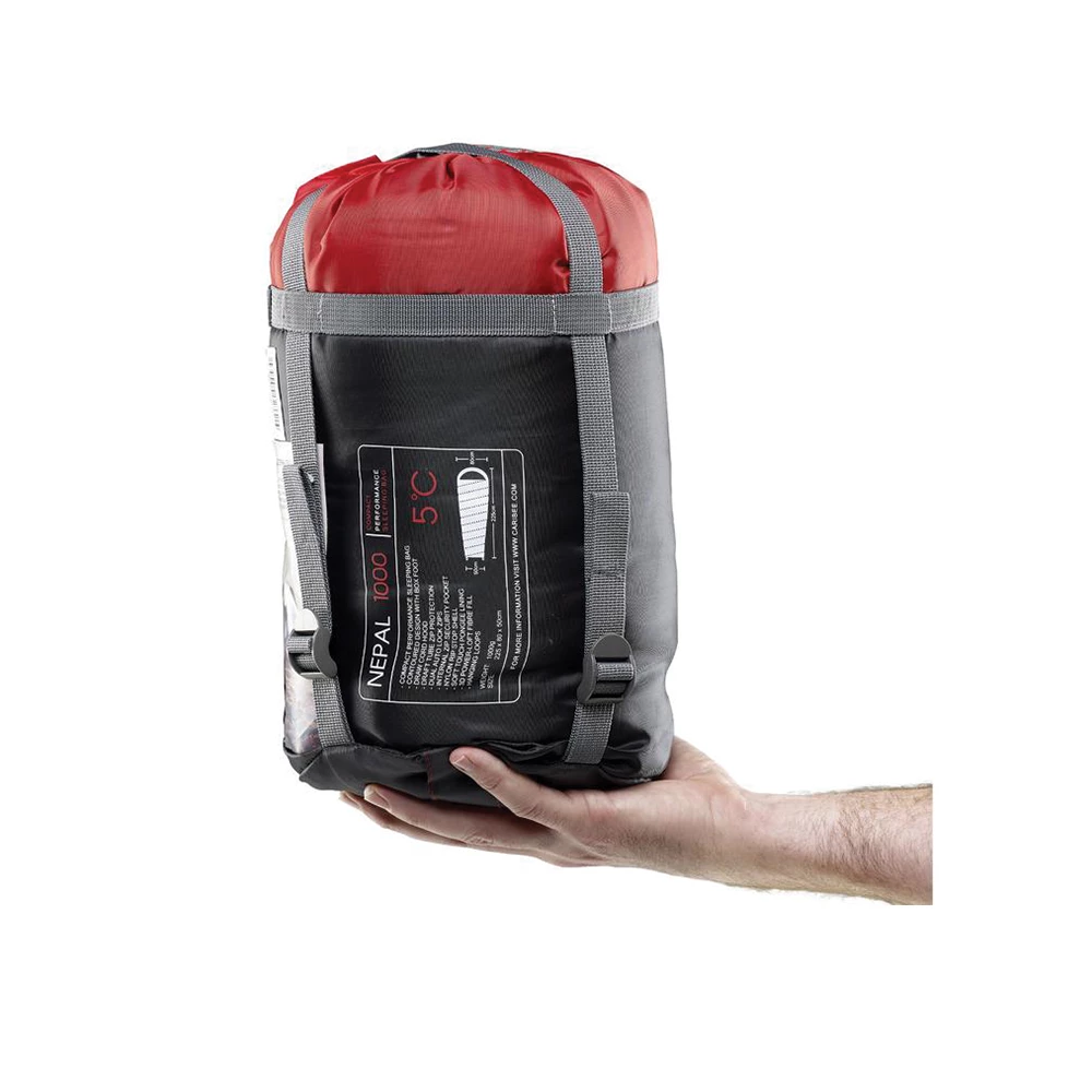 The Caribee Nepal 600 is an ultra compact 10C sleeping bag that can compact down to a palm sized 16 x 14cm stuff sack for easy transport. The Caribee Nepal 1000 is a compact 10C sleeping bag that can be reduced down to a small 20 x 16cm stuff sack for easy transport. This quality sleeping bag has a contoured body design with box foot construction providing additional comfort when you sleep.