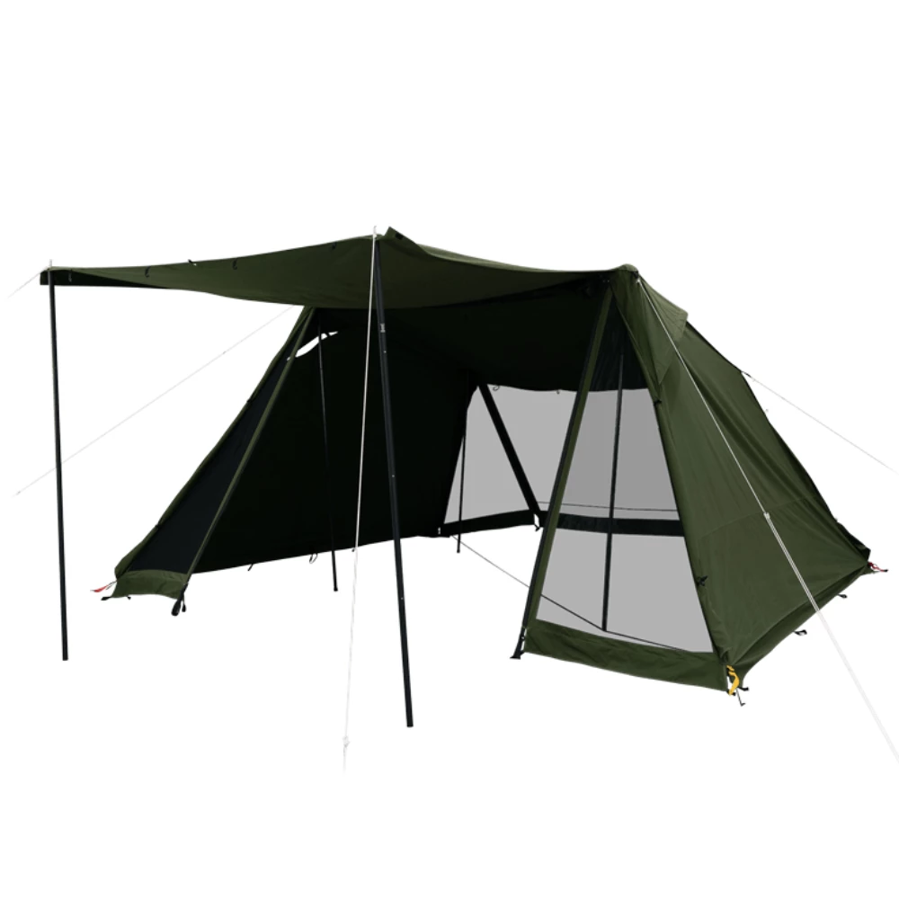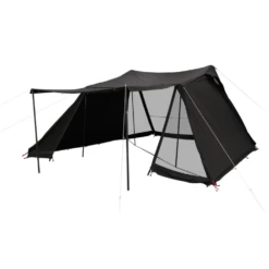 - Four poles are used to create a more open interior space than a typical two-pole shelter.
