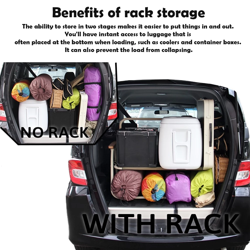 Make a shelf in the luggage compartment of the car. A two-seat sofa that helps store camping equipment in the car.