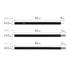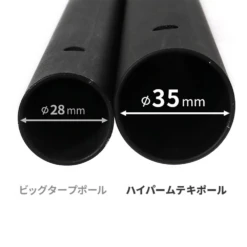 Used as the main pole of the large tarp big tarp pole more thicker, is a thick tarp pole was difficult to more bend. By making it 35 mm in diameter, the rigidity against bending is about 1.3 times that of the big tarp pole (* our standard). As the main pole of a large tarp, it is a recommended tarp pole for those who want a more secure feeling. The product name “Hyper Muteki” does not mean that it will never break or bend.