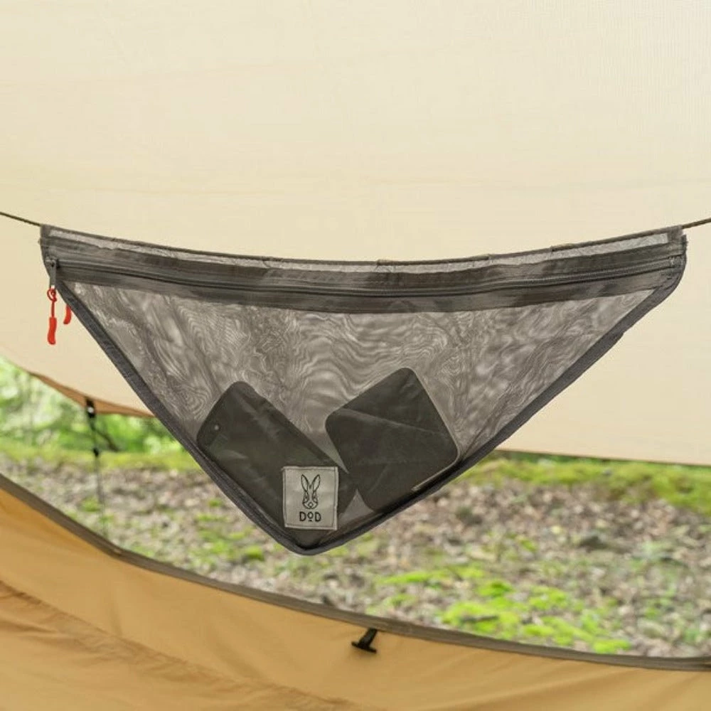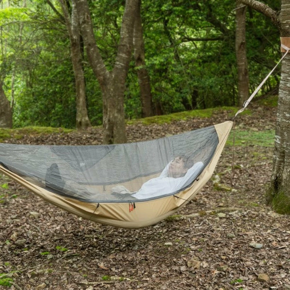 - By pegging down the shock cord of the hammock body, you can suppress the shaking. In addition, the floor spreads out, so you won’t feel cramped.