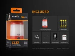 The Fenix CL23 Lantern is a multi-directional, lightweight camping lantern. Powered by AA batteries this lantern delivers a max output of 300 lumens—plenty of light to illuminate your entire campsite. A unique feature of the lantern is the multi-directional lighting modes—three brightness levels of 360° light, a front light and two brightness levels of down light. Don’t have enough batteries? Power the CL23 with only one or two batteries in an emergency situation. Durable and rain-resistant this lantern a perfect camp companion.