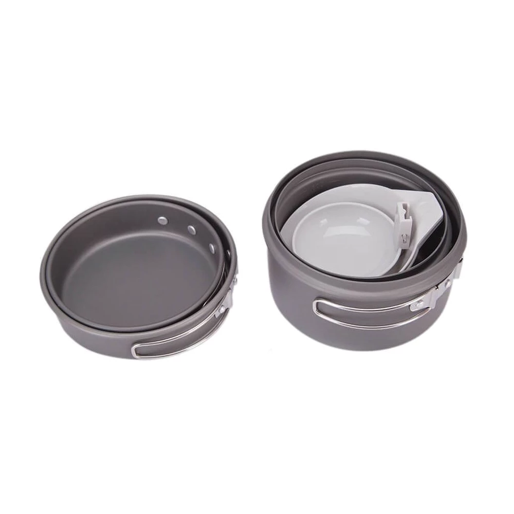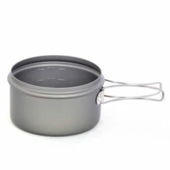 The Solo 2 is a hard anodizing cookware set made of high grade aluminum. The pot’s lid can be used as a frying pan. This set includes 1.2 L pot pan, 0.9 L pot pan, 2 plastic bowls, 2 folding scoopers and 1 mesh bag.