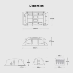 - Size: Installed: 650 x 400 x (h)215cm | Storage: 89 x 50 x (h)37cm | Inner tent: 360(320) x 217 x (h)188cm