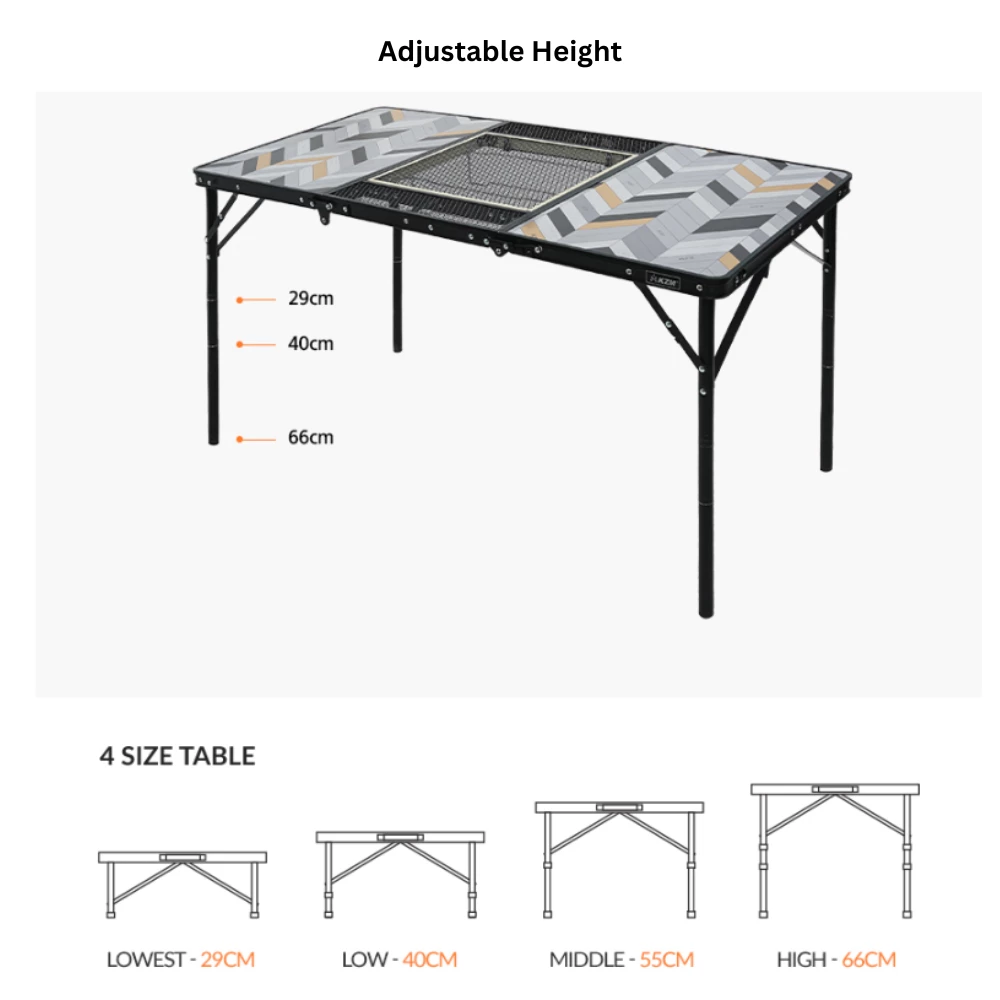It is a 3-fold BBQ table that can be easily installed and can be adjusted in height, making it a good table to use anytime, anywhere. Heat-resistant powder coating coating increases heat resistance and corrosion resistance, so it is not easily damaged by strong heat or moisture. It can be used by mounting various burners on the BBQ burner plate that can be adjusted in two stages. An infinity system that can be used by connecting an unlimited number of tables is applied.