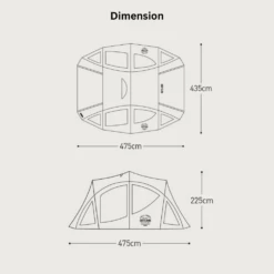 - Material : Main Tent: P/RIP 75D PU 3,000mm TEFLON COATING UV W/R | Roof: P/RIP 75D PU 3,000mm TEFLON COATING UV W/R | Pole – Front/Back: AL Ø16 / Center Pole: AL Ø19 / Side Pole : AL Ø16