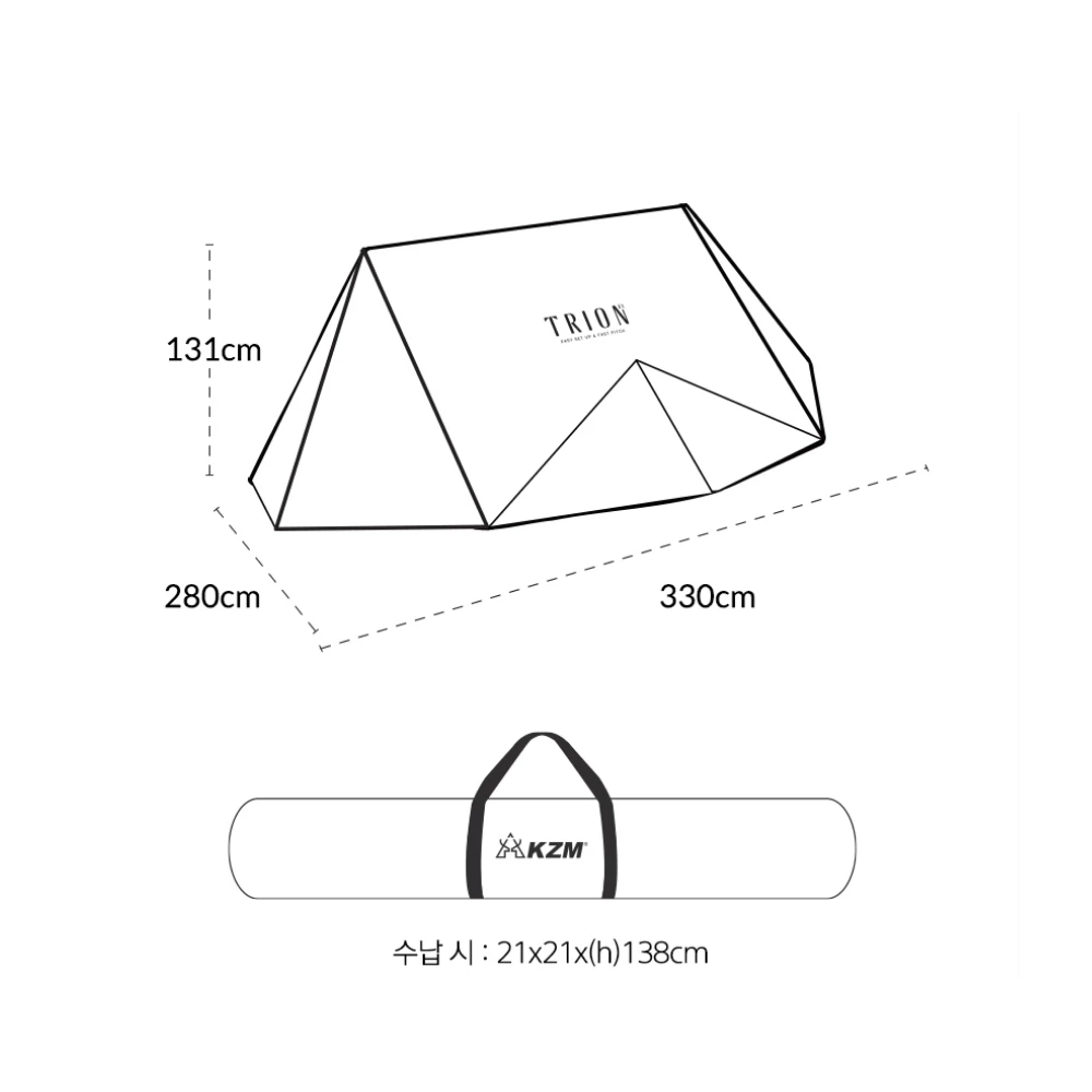 - Size : Upon installation-280x330x(h)131cm / Storage-21x21x(h)138cm / Inner tent-210x210x(h)130cm