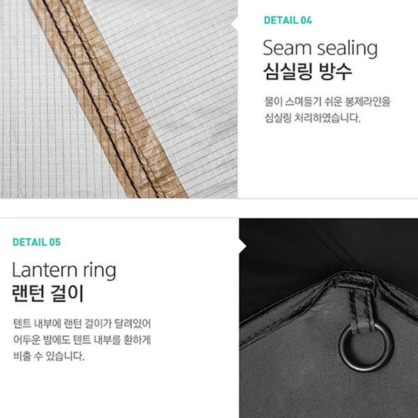 - Inner tent – Black color: P/T 68D 190T 450mm PU W/R | White Color: P/T 68D 185T 450mm