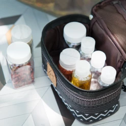 It is a spice box that can be used easily in the outdoor or kitchen by a set of spice cask consisting of three sizes of spice cans. Strong organization and a waterproof polyester case make it easy to store contents safely.