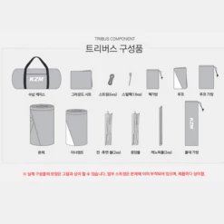 - Component : Body, Inner tent, Ground sheet, Daisy chain, Main pole 2EA, Front·Rear pole 2EA, Ridge pole, Canopy pole 2EA, Steel peg 18EA, String 6EA, Carry bag
