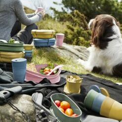 All you need to bring your own, eat in style, and pack away again. Designed especially for Light My Fire by Scandinavian design Joachim Nordwall, the LunchKit BIO is a handy all-in-one meal kit, perfect for lunch or a snack. The kit includes 1 lid that functions as a plate (500 ml), 1 deep bottomed bowl that also function as a plate (900 ml), 1 SnapBox Original (170 ml) food storage container, a SnapBox Oval (320 ml) storage container, and 1 Light My Fire Spork Original. It also includes a harness to keep the kit all together. Tight-fitting, snap-lock lids keep contents inside the waterproof SnapBoxes instead of all over your bag. This mess kit is especially versatile thanks to the Light My Fire Spork Original that’s a spoon-fork-knife combo. The beauty of this kit is that it all nests inside itself for a compact and transportable meal on the go. Lastly, all components are dishwasher and microwave safe, and are made from Biobased plastics that are 100% BPA-free. This makes the kit versatile to use as a lunchbox for school or work.