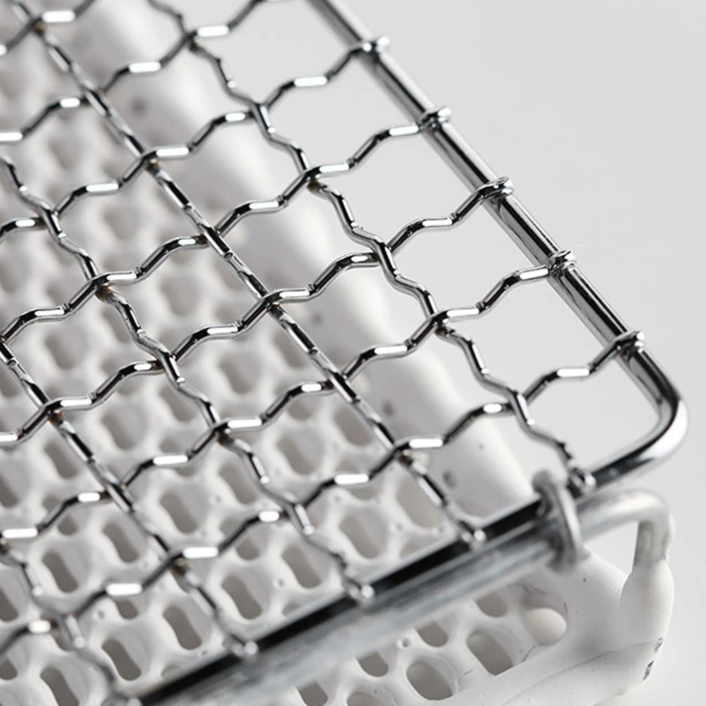 - The direct fire baking mesh has two layers of structure. The upper layer is made of iron chrome plated material, which is stable and safe. The lower layer is covered with white ceramic layer. When the ceramic layer is heated on the fire, it will heat through infrared radiation to bake food.