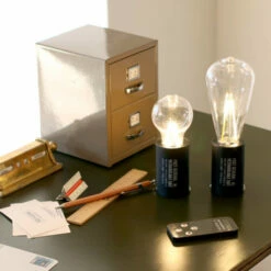 - A USB rechargeable LED lamp that can be turned on and off with remote control