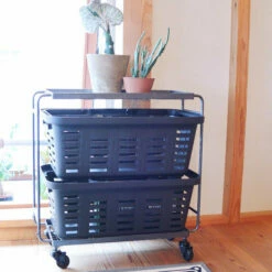 - Shelf-type wagon exclusively for HEAVY DUTY BASKET LONG size with two EAVY DUTY BASKET LONGs attached.