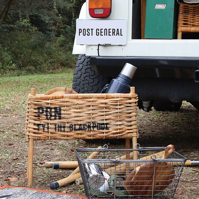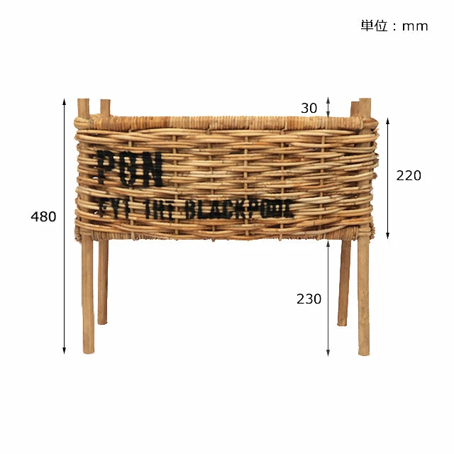 A stand-shaped basket with a stencil effect that creates a vintage-like atmosphere.