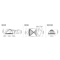 - Flysheet: 75D Polyester Taffeta, PU Coating 1,800mm, Teflon Water Repellent, UV Cut Processing