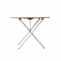 Designed in Japan, the Single Action Table Long, Bamboo Top features a solid laminated bamboo worktop in an updated finish and durable aluminum legs. Use it for dining with groups of four to six in the garden or campground. The Single Action Table Long, Bamboo Top folds in half for compact storage inside its nylon carry case. To set up, unfold the table and legs, then attach the support by inserting into the cylindrical notch and twisting closed. Each purchase includes one table and a carry case. Pair the Single Action Table Long, Bamboo Top with four Red Folding Chairs.