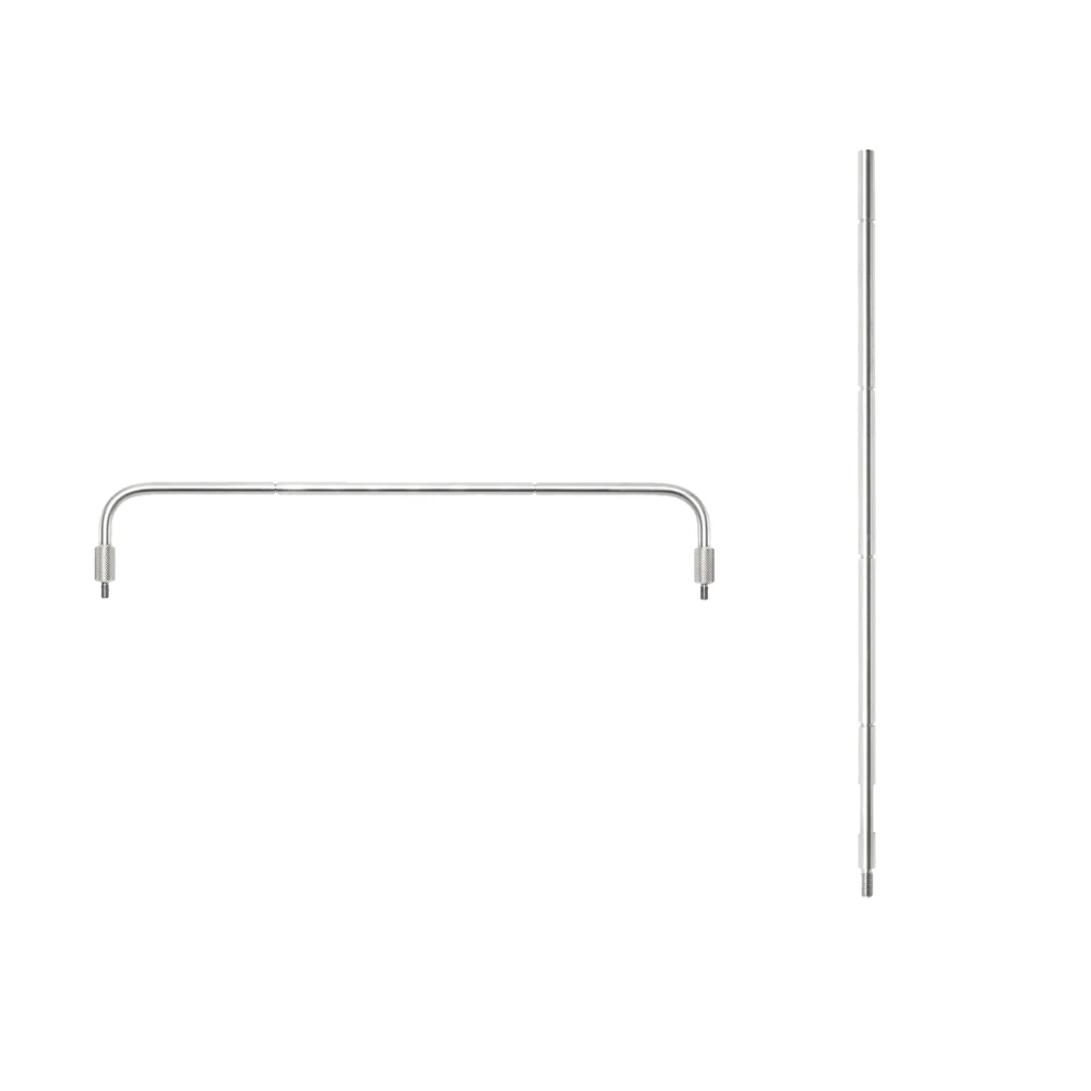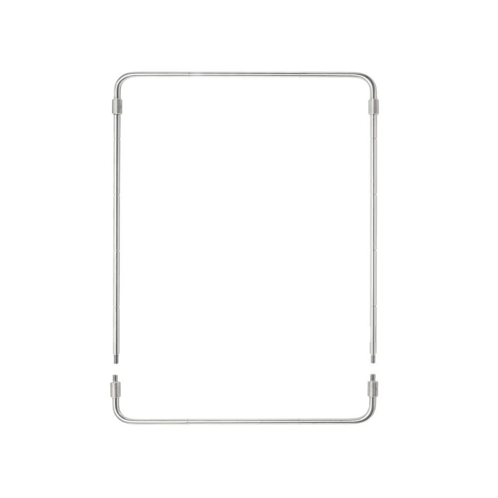 The TTA (Table Top Architect) Unit Frame is a component of the IGT system and TTA series that can be used as a shelf for storage. Kitchen tools can be hung on the frame, and it is compatible with the Shallow Mesh Tray Half Unit and Deep Mesh Tray Half Unit for additional storage and organizing. To use, connect the frame ends into two TTA Clamp Tools and adjust the tension.