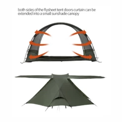 - Both sides of the flysheet tent doors curtain can be extended into a small sunshade canopy