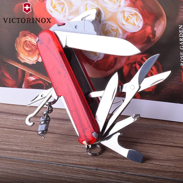 - Features 21 tools including : large blade, small blade, reamer, punch and sewing awl, can opener, screwdriver 3 mm, bottle opener, screwdriver 6 mm, wire stripper, scissors, nail file, key ring, toothpick, tweezers, Phillips screwdriver 1/2, digital watch (12h), pressurized ballpoint pen, pin, stainless steel, LED, mini screwdriver, corkscrew, multipurpose hook