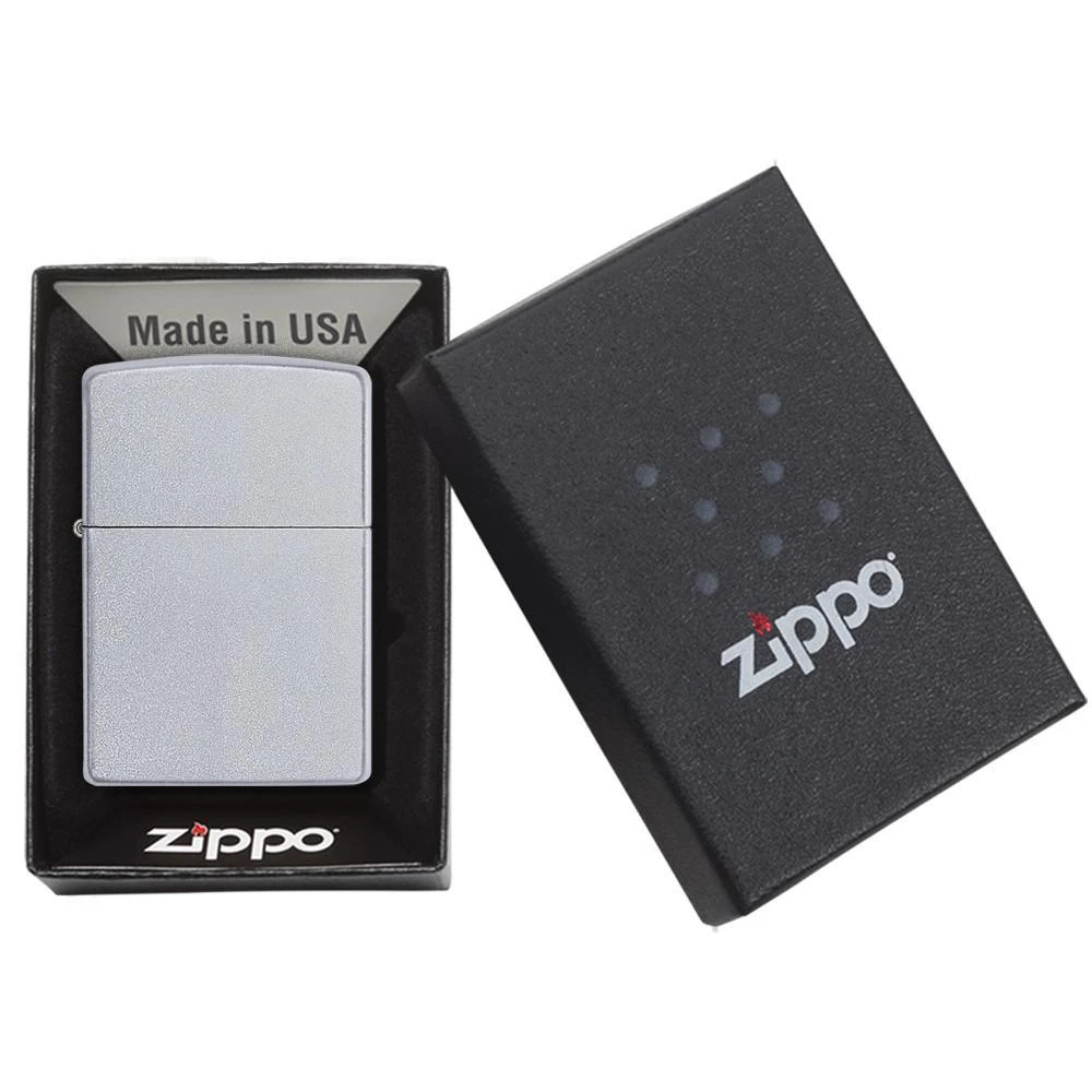 - Genuine Zippo windproof lighter with distinctive Zippo “click”